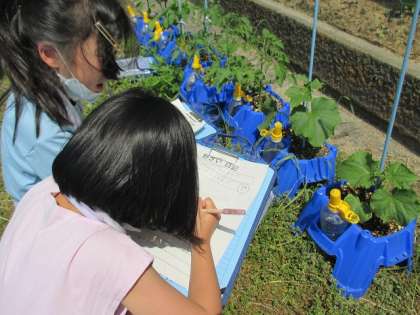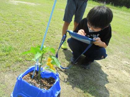 5/23(火)大きくなってきたよ!(2の2) 公開日 2023/05/23 更新日 2023/05/23 2年生 葉っぱの枚数が増えたり、花が咲いたり、赤ちゃんピーマンができていたり・・・。生長が楽しみですね。