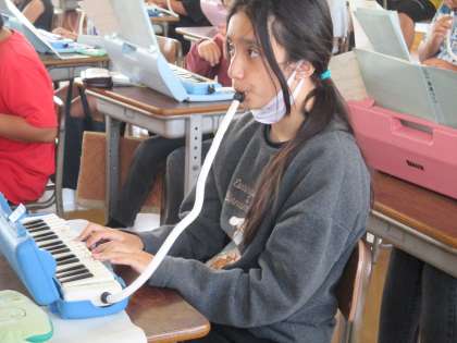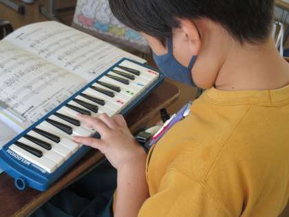「こきょうの人々」の曲に合わせて「ドミソ」と「ドファラ」の2つの和音を重ねていました。