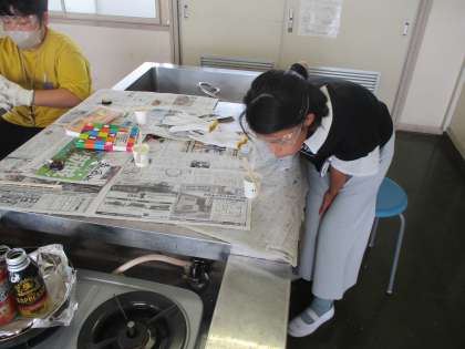 林間学校で使う予定のキャンドルを作っています。安全に気を付けながら、ロウを溶かしています。
