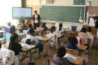 タブレットを つかって ずこうの さくひん かんしょうを しました。ともだちの さくひんのがぞうを みて、いいところや すてきなところを みつけて かんしょうカードに かきました。