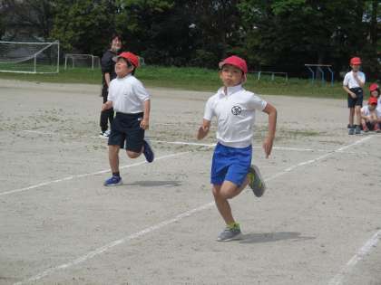 50m走のタイムを計測していました。最後まで力を抜かず、走り抜けていました。