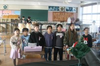 きゅうりのつるがまきつくように、トマトやピーマンのなえがたおれないように、しちゅうを立てました。わき目を取って、まっすぐ育つように、お世話をしました。