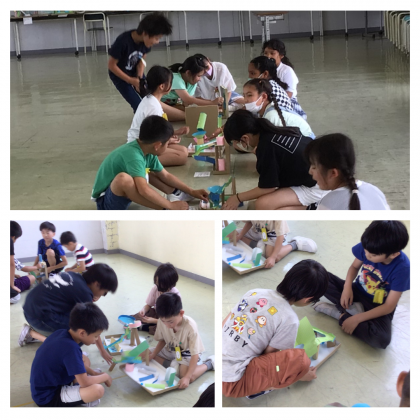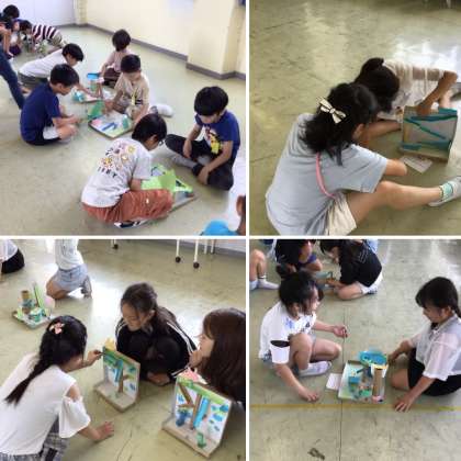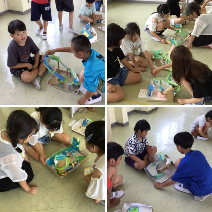 6/11(火) ビー玉 大ぼうけん(4年生) 公開日 2024/06/11 更新日 2024/06/11 4年生 完成した作品を互いに交換しながら遊びました。工夫しているところやコースのおもしろさなど、感想を伝え合って鑑賞しました。
