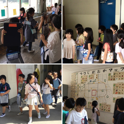 きょうの がっこうたんけんは、きょうしつの ちかくの ばしょを みて まわり ました。しっている ばしょも ありました が、せんせいの せつめいを ききながら みると、あたらしい はっけんが あるね。