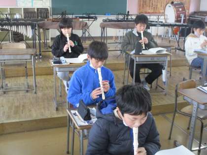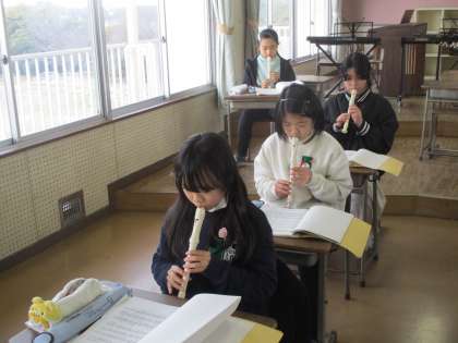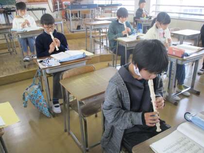 心をこめて演奏しよう(6の1) 公開日 2023/02/08 更新日 2023/02/08 6年生 「カントリーロード」の曲をリコーダーで演奏しています。曲の盛り上がりを生かした演奏ができるとよいですね。
