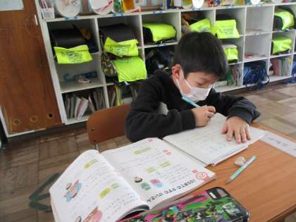 10、20、30など10のまとまりの数同士のたし算やひき算を学習しています。10の0をとって計算すると、今までに勉強した計算と同じだということを利用して解いています。みんな集中して取り組んでいます。