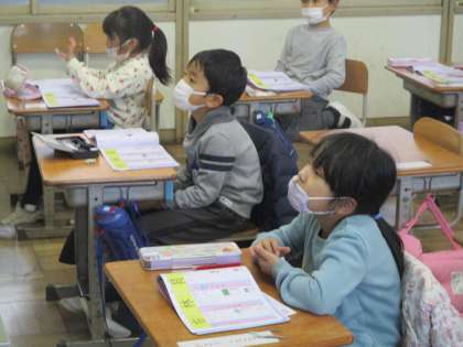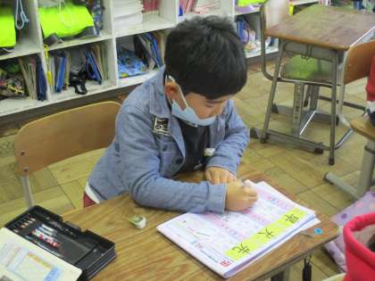 新しい漢字の学習をしました。気をつける部分についての話をしっかりと聴いています。