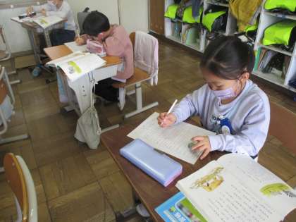 どうふつの赤ちゃん(1の1) 公開日 2023/02/13 更新日 2023/02/13 1年生 「どうぶつの赤ちゃん」の文章を読んで、書かれていることをワークシートにまとめています。ライオンの赤ちゃんについて表にまとめることができたでしょうか。