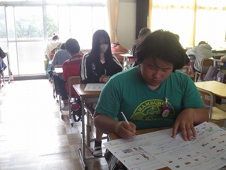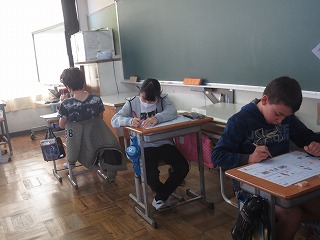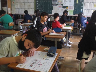 英語のテストは、CDの音声を聞きながら順に進めていきます。よーく耳を澄まして聞いて取り組んでいます。さすが6年生。集中力が違いますね。