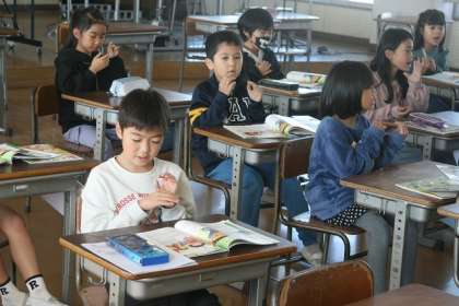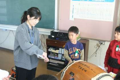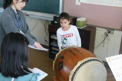 11/18(月) たいこのリズムをつくろう(2の1) 公開日 2024/11/18 更新日 2024/11/18 2年生 今日は、実際にたいこをたたいてみました。 はじめてたたく子もいます。どれくらいの大きさの音が出るのかな?