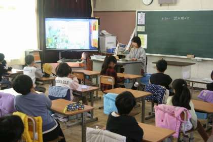 おはなし広場の方が、読み聞かせに来てくださいました。 集中して聞いていますね。