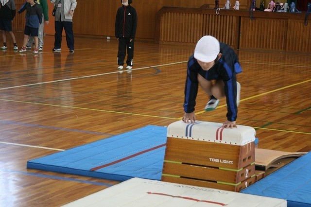 2/5(水) かかえ込み跳び(3年生) 公開日 2025/02/05 更新日 2025/02/05 3年生 開きゃく跳びの次は、かかえ込み跳び・・・ひざをかかえて跳びますが、顔から落ちそうでちょっとこわい と思ってしまう子もいました。コツをつかむとできるようになります。がんばって!