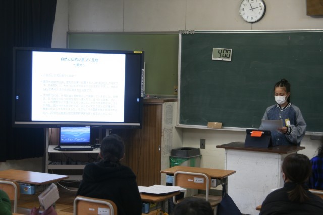 3/4(火) 愛知県のいいところ(4の1) 公開日 2025/03/04 更新日 2025/03/04 4年生 これまで、調べてきたことをまとめて、愛知県のいいところを紹介していました。自然豊かなところや伝統的な文化・産業などについて発表していました。
