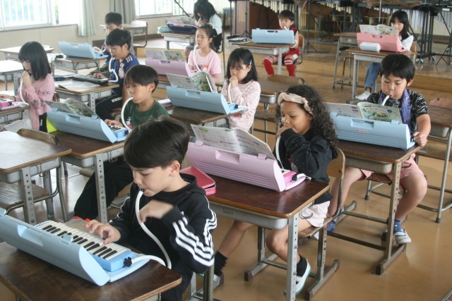 かえるのがっしょう(2の2) 公開日 2025/05/30 更新日 2025/05/30 2年生 「かえるのがっしょう」を練習していました。なれてきたら、けんばんハーモニカでも、曲のおいかけっこをするのかな? +6