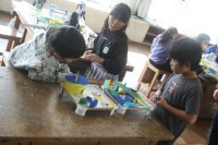 3年生の図工の時間・・・マグネットマジックも、もうすぐ完成です。道をつくり、柱を...