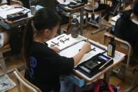 書写コンクールの練習です。課題は「生命」。バランスが難しそうですね。お手本をよく...