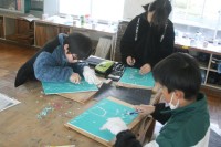4年生から彫刻刀を使って、木版画に挑戦します。先生から、彫刻刀の特徴や彫り方など...