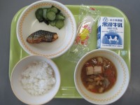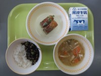 〔献立〕737kcal〇ご飯〇牛乳 〇さばの塩焼き〇きゅうりとわかめの和...