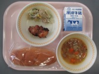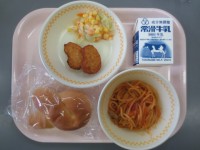 〔献立〕618kcal〇ソフトめん〇牛乳 〇和風かけ汁〇大学いも〇野菜の...