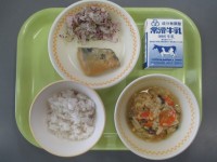 〔献立〕577kcal〇麦ご飯〇牛乳 〇海の香りごはんの具〇豆乳まろやか...