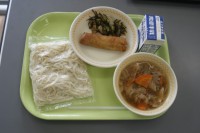 献立〕624kcal〇ソフト麺〇牛乳 〇ちゃんぽん風かけ汁〇春巻き〇白菜...