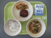〔献立〕717kcal〇ミルクロールパン〇牛乳 〇豆腐ハンバーグのきのこ...