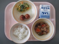 〔献立〕635kcal〇ご飯〇牛乳 〇けんちん篠田の肉みそかけ〇ひきずり〇...