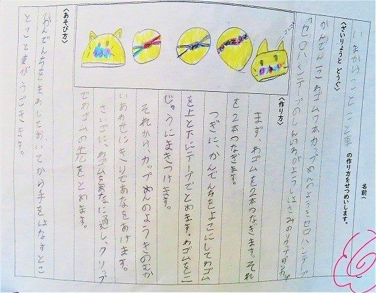 けん玉、マラカス、やじろべいなど工夫をしながら楽しくおもちゃ作りをしていました。