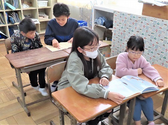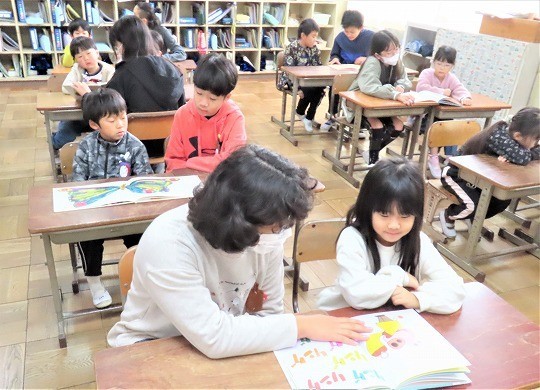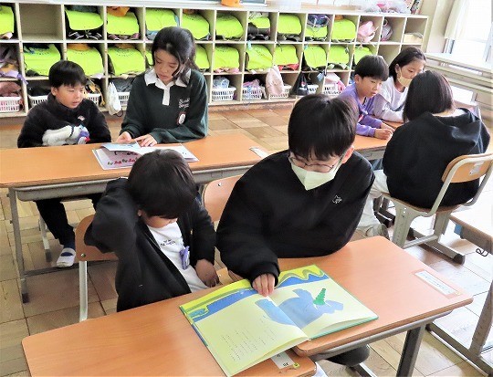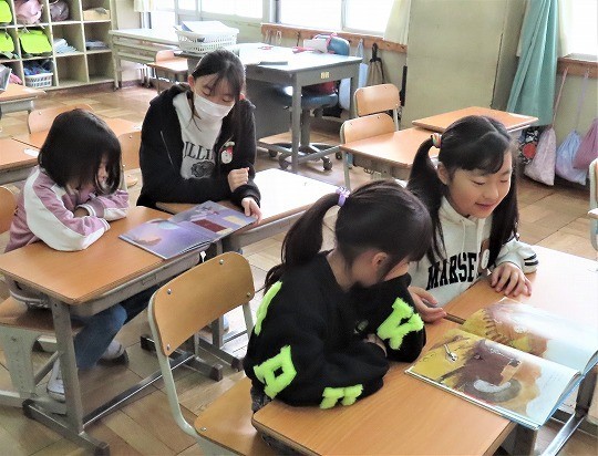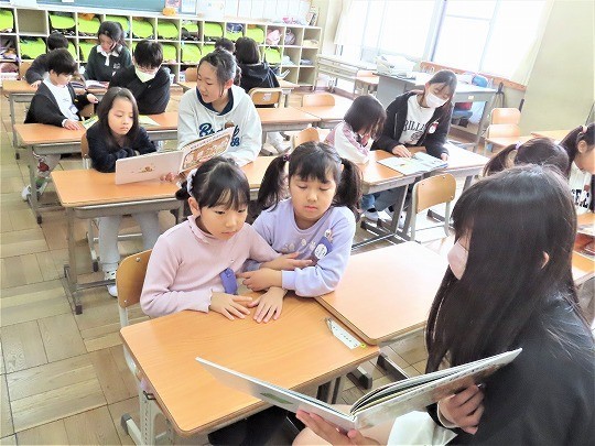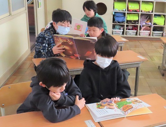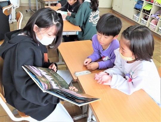 1年生の図工は、「おはなしだいすき」で描いた作品の鑑賞をしていました。