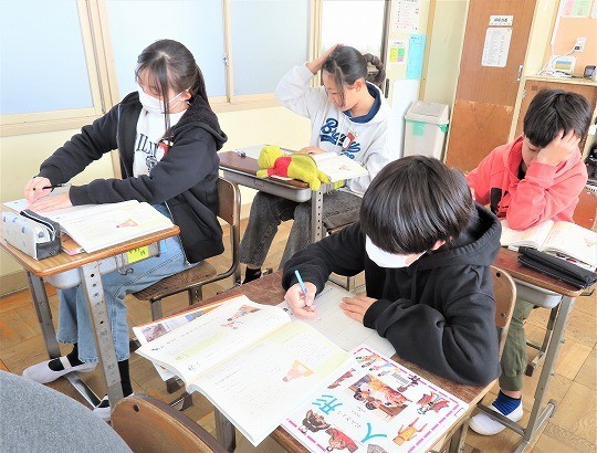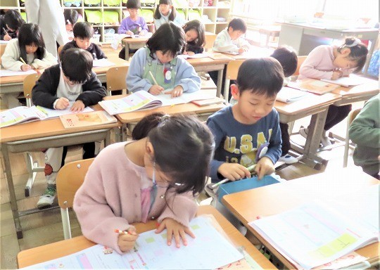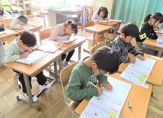 4年生は、朝の活動時間に計算検定の練習をしていました。