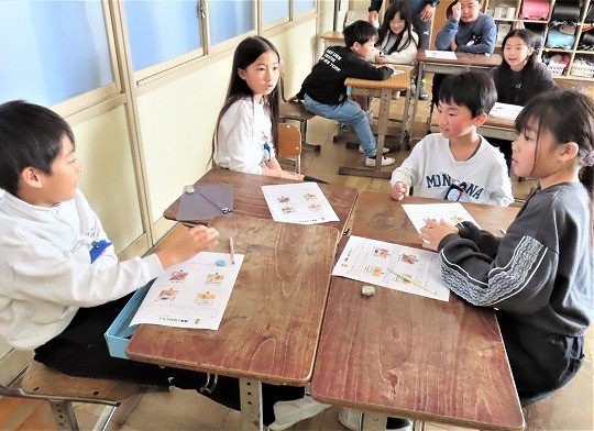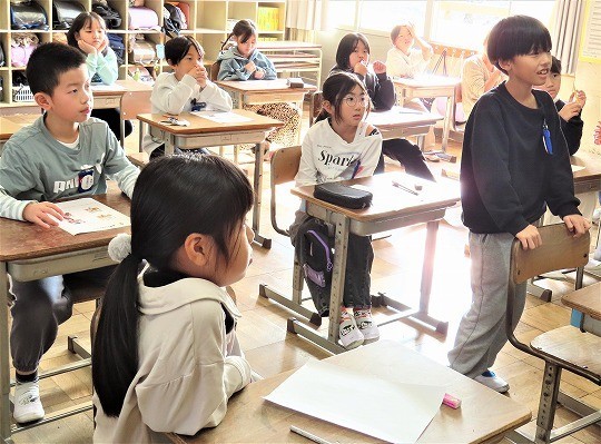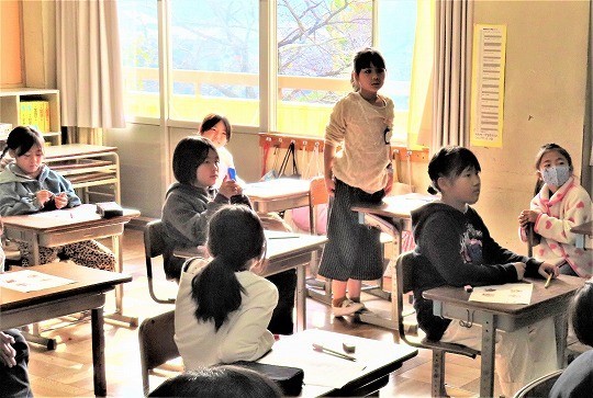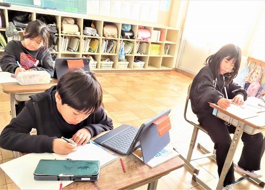 3年生の理科は、虫眼鏡で日光を集めて当てると、明るさや暖かさがどう変わるかを考えていました。