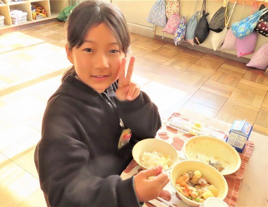今日のメニューは、麦ご飯、牛乳、イワシの梅煮、肉じゃがでした。今日もおいしくいただきました。
