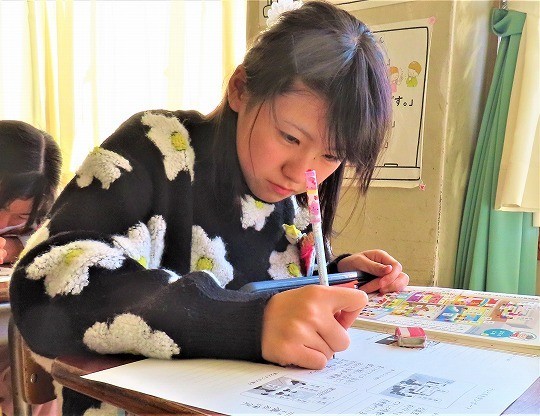 小数点の位置に気をつけながら、黙々と問題演習に取り組んでいます。