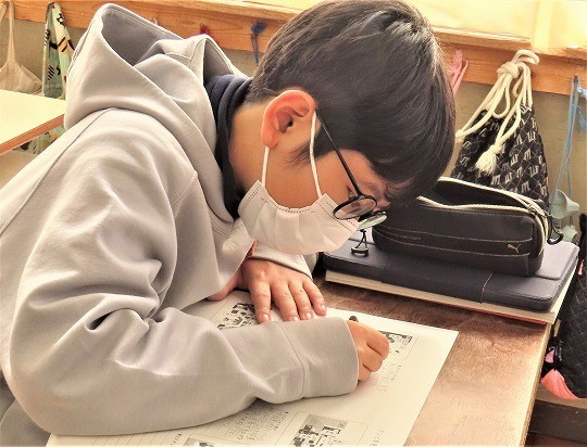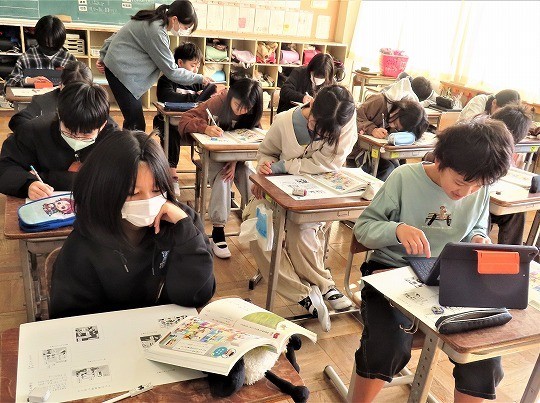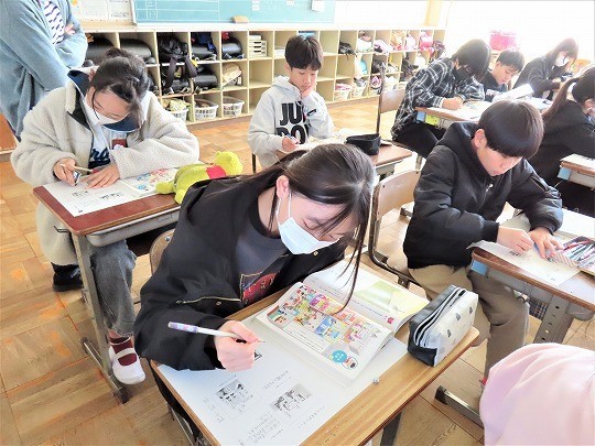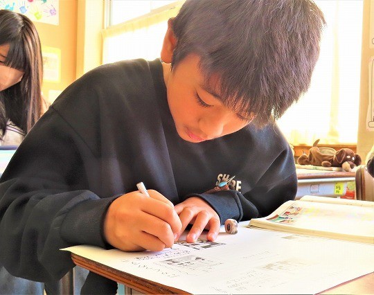 教科書で指定された言葉をすべて使って、相手にわかりやすく伝える文章づくりに取り組んでいました。