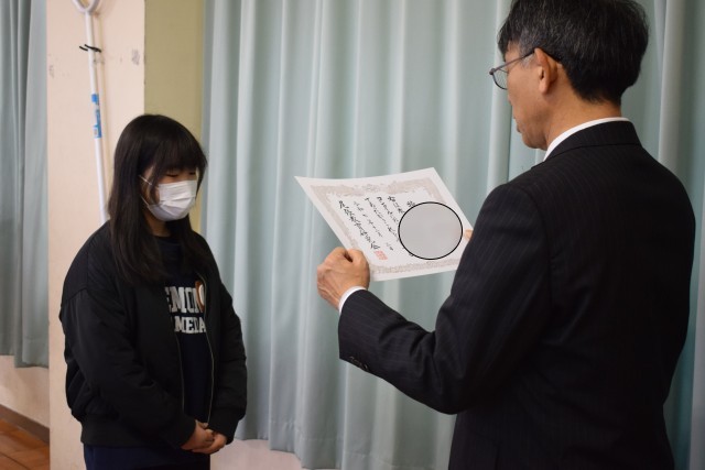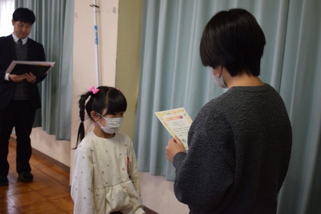 通知表や漢字・計算検定の合格証、多読賞などの配付を行いました。