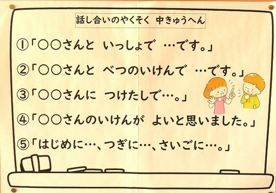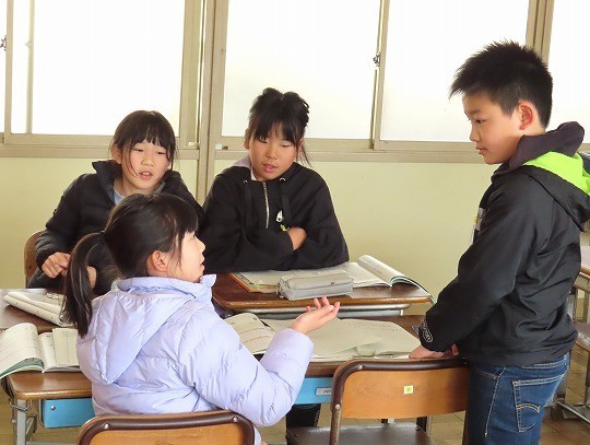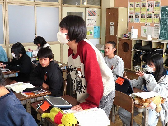 今日は、本文を読み、説明文の最初の段落にはどのようなことが書かれているのか話し合っていました。