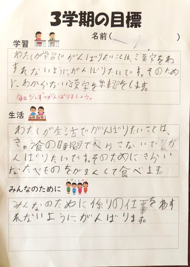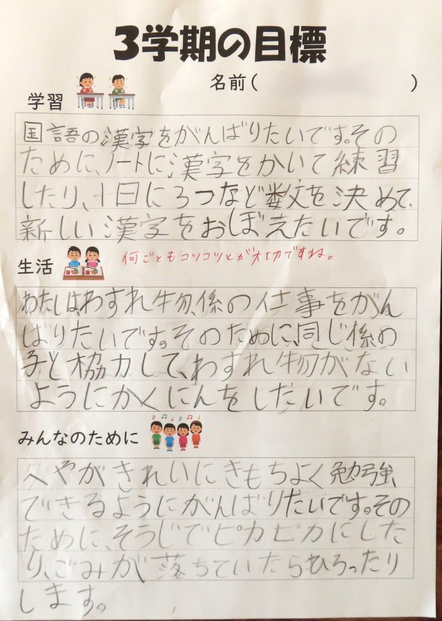 昨年と比べると難しい問題が解けるようになってきました。足りないところを補強して、3年生に進みます。