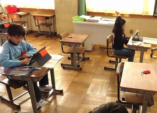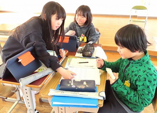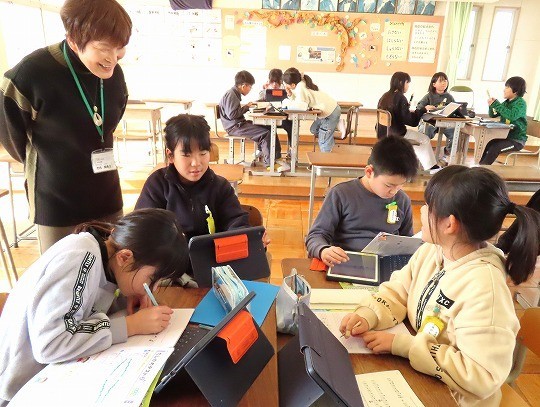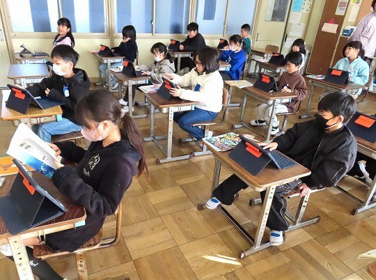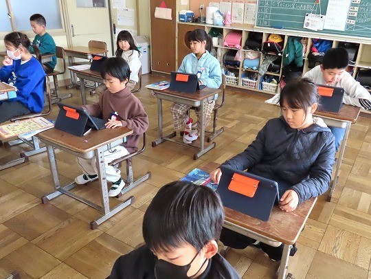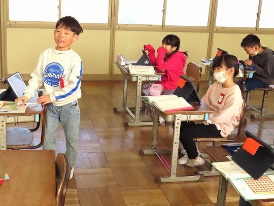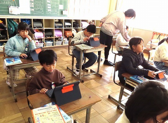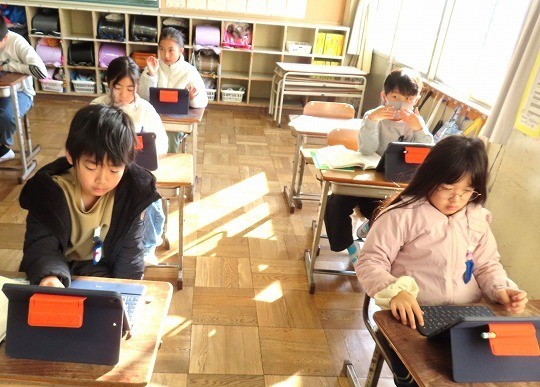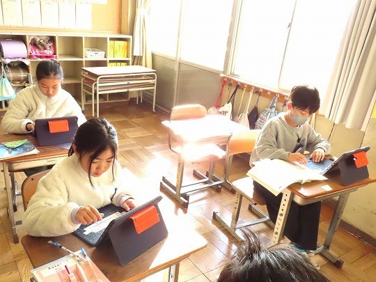 冬になって、昆虫や鳥などが秋の頃からどのように変わっているかをインターネットを使って調べ、わかったことをまとめていました。
