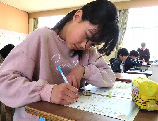 1年生は、はじめての学力テストです。リスニング問題もあって緊張ぎみの様子でした。