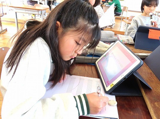 4年生の音楽は、「音階をもとにして音楽をつくろう」を学習していました。