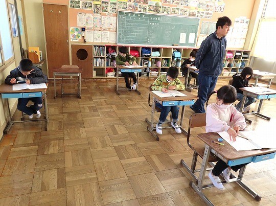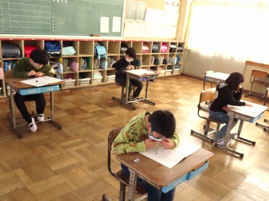 今日は、全学年で算数の学力検査を実施しました。