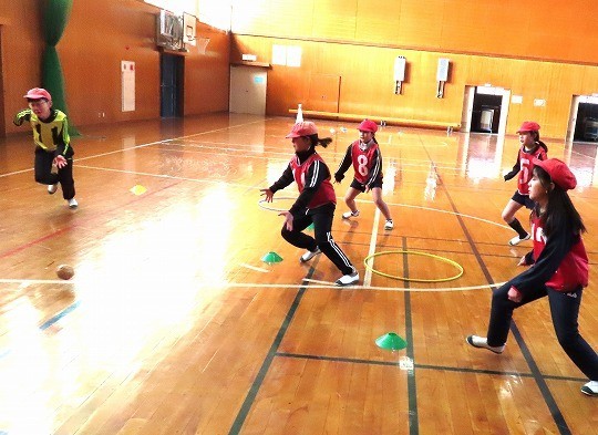 4年生の体育は、ベースボール型ゲームをしていました。