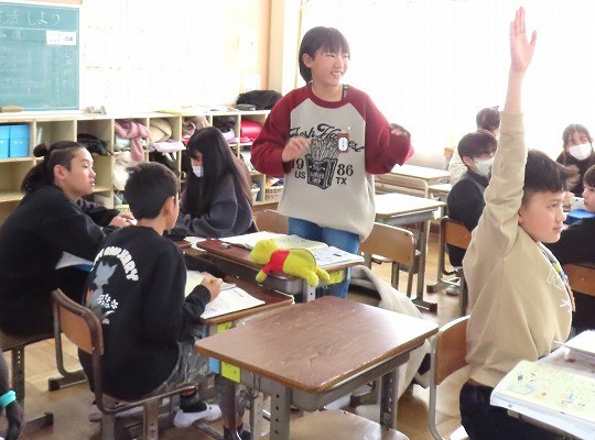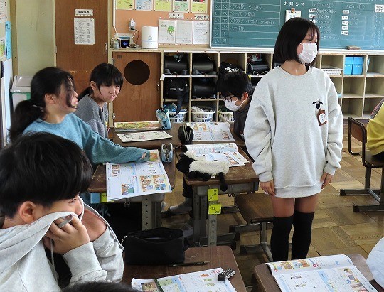 昭和30年代の暮らしについて教えていただきました。また、当時使っていた子どもたちの教科書に触れることができました。