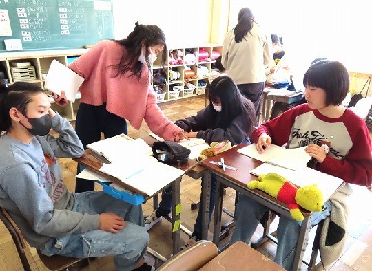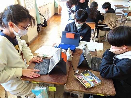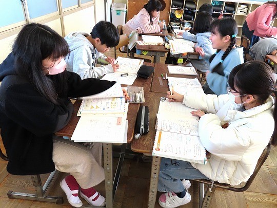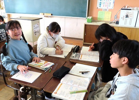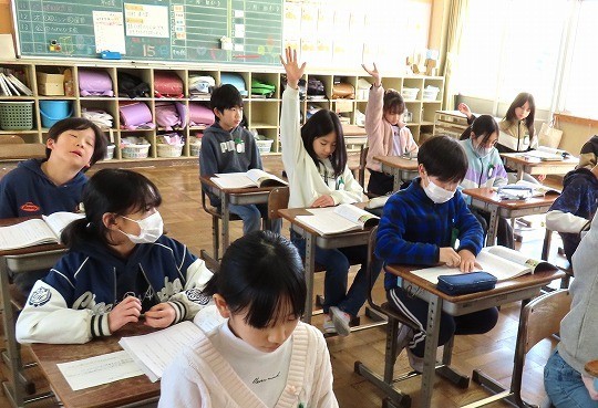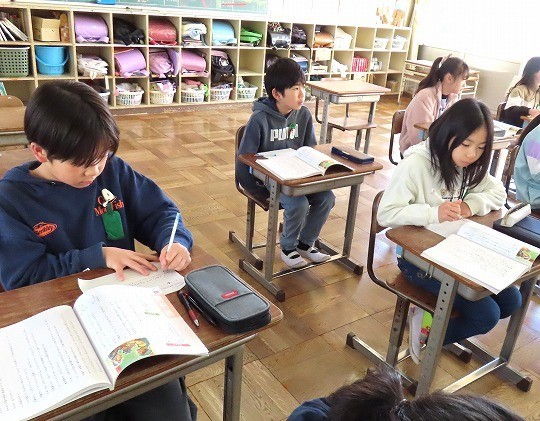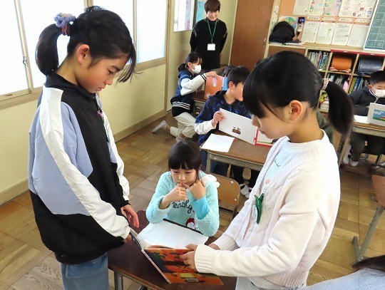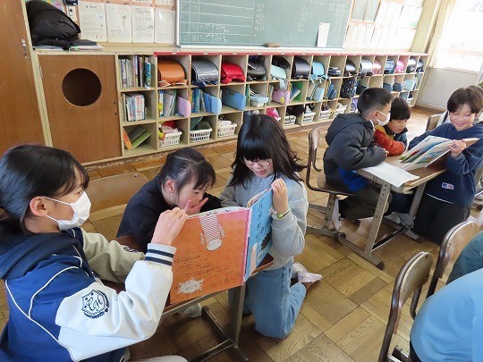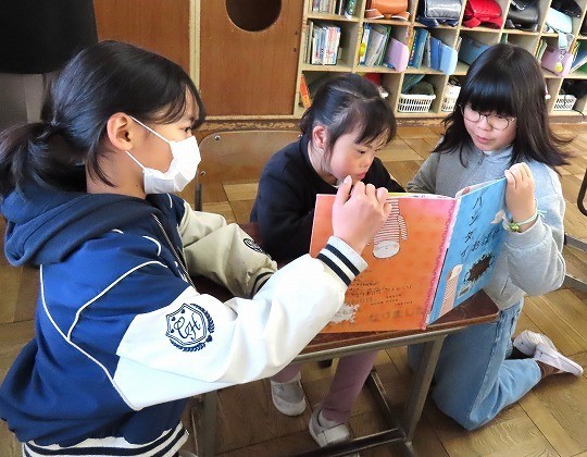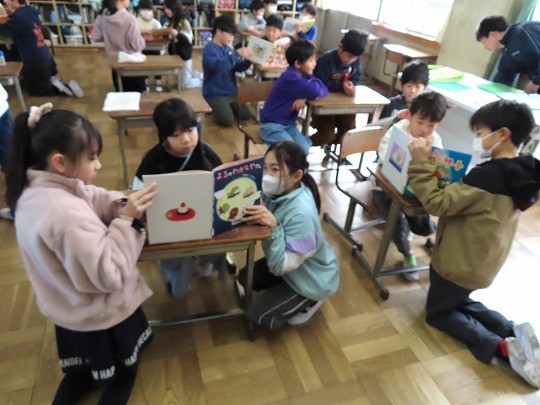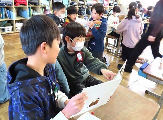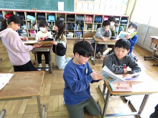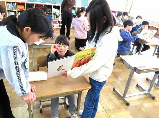 朝の読書タイムに、5年生が2年生に読み聞かせをしていました。