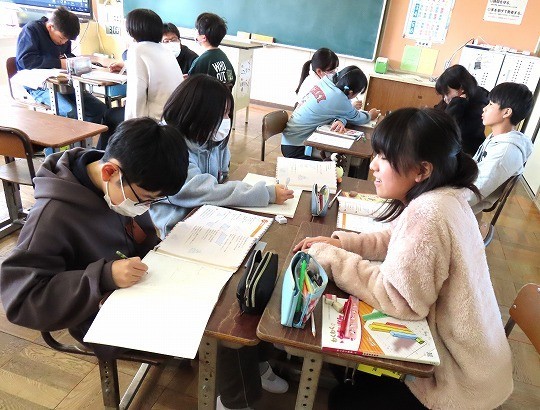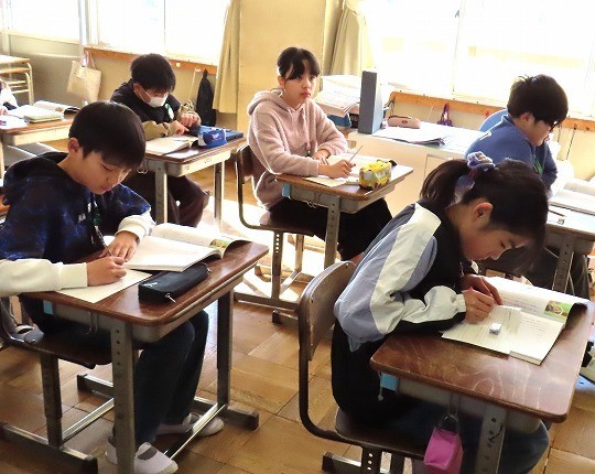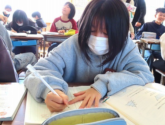 「手」「才」「会」を文字の形に注意しながら、丁寧に書く練習をしていました。