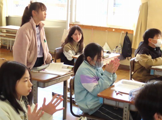 ペアのお兄さんお姉さんの読み聞かせに、2年生は耳を澄ませて聞き入っていました。