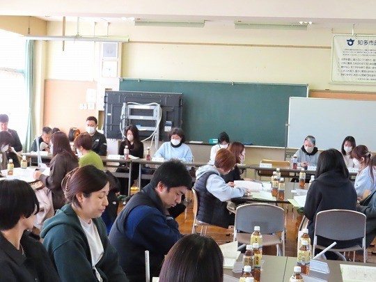 現在、知多市が抱えている課題や取り組みについて調べ、その内容をカルタに表現していました。
