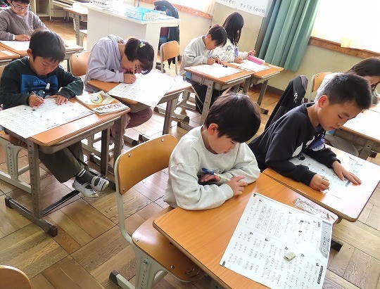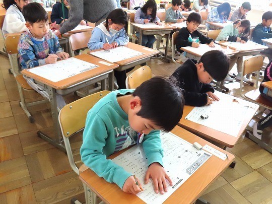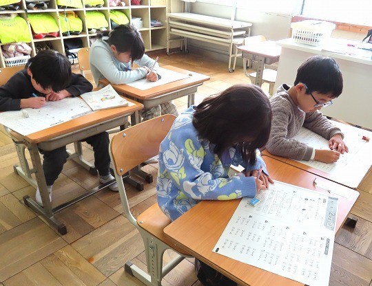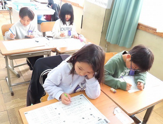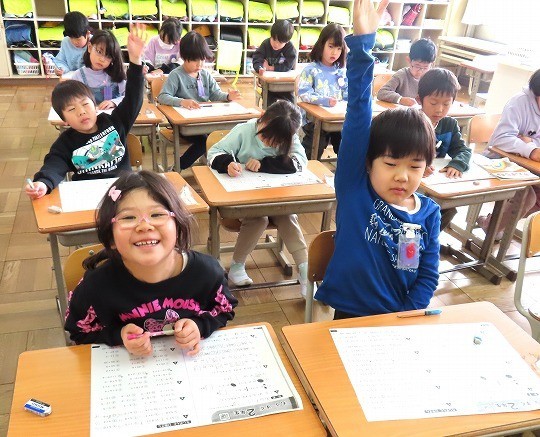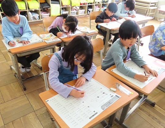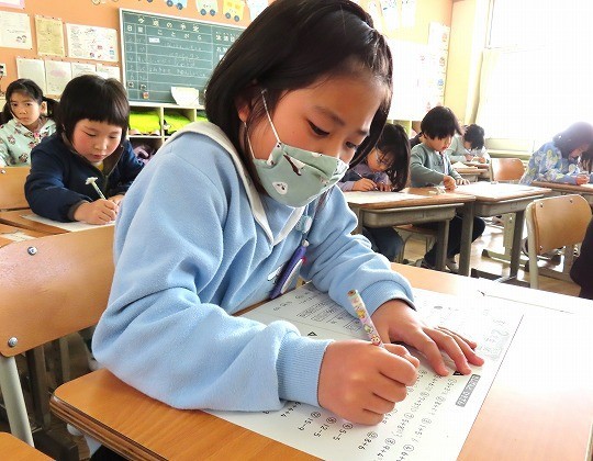 1年生の算数は、「もうすぐ2年生」のプリント問題をしていました。