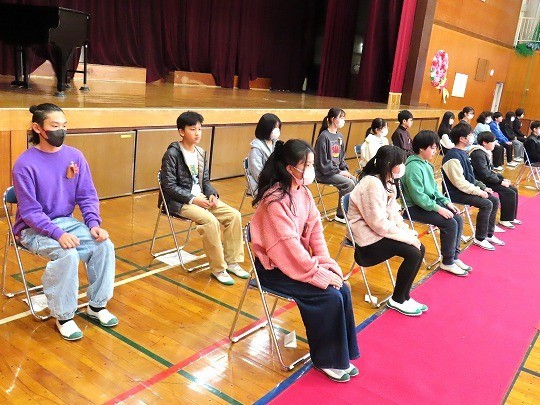 証書の受け取り方と中学校での抱負を確認できました。