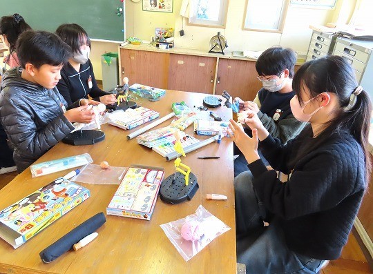 ゴムの力を利用してとぶ作品を作っていました。